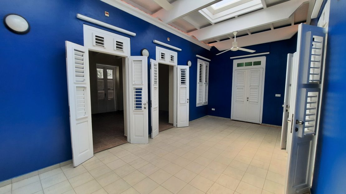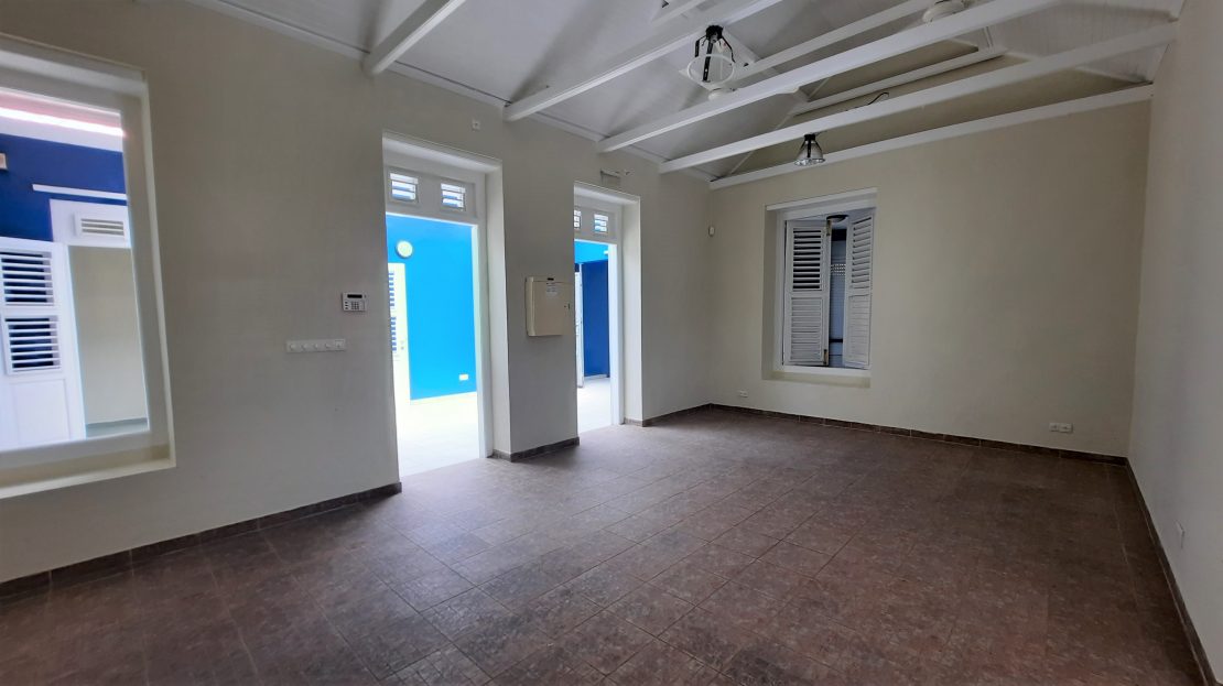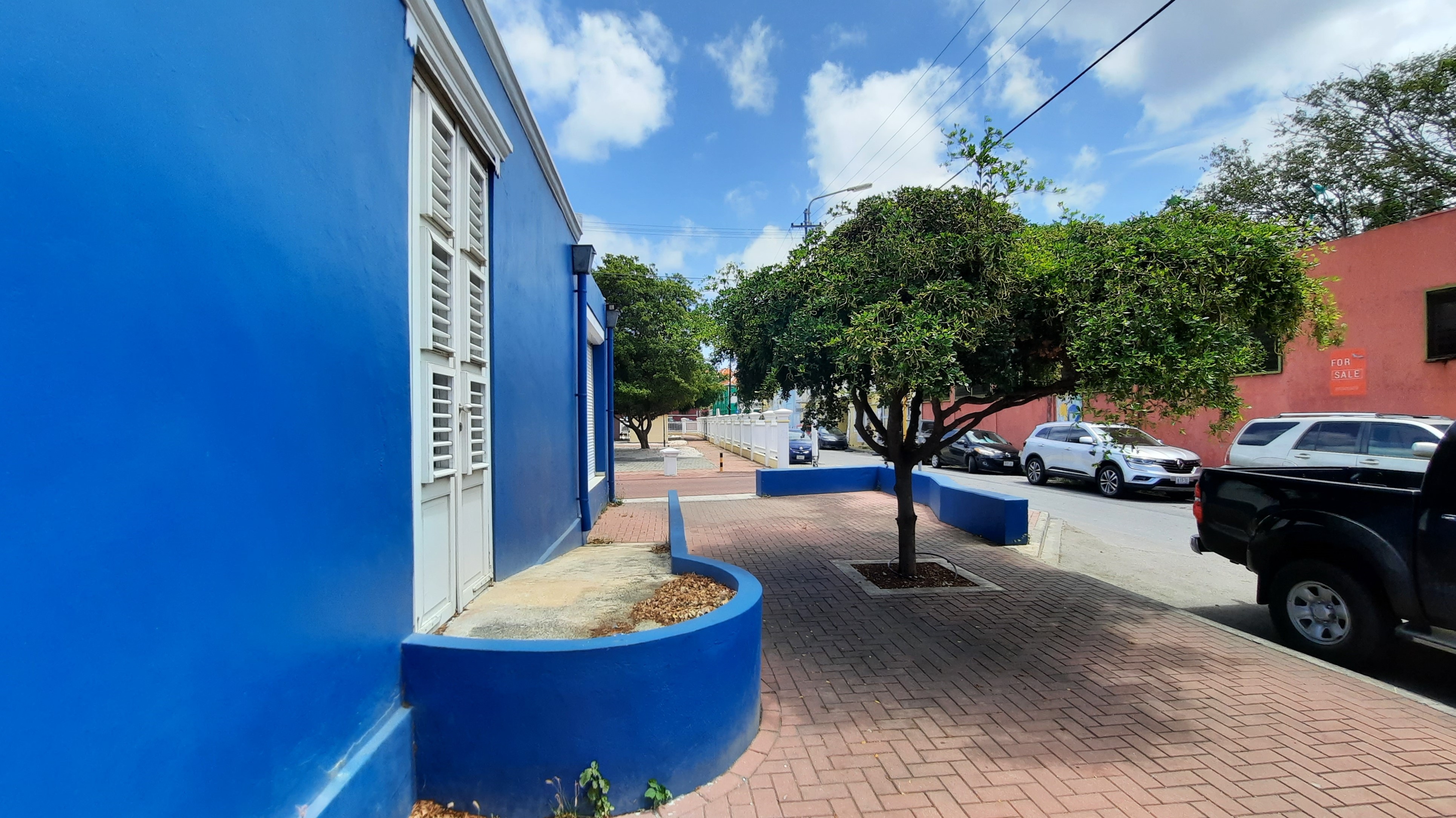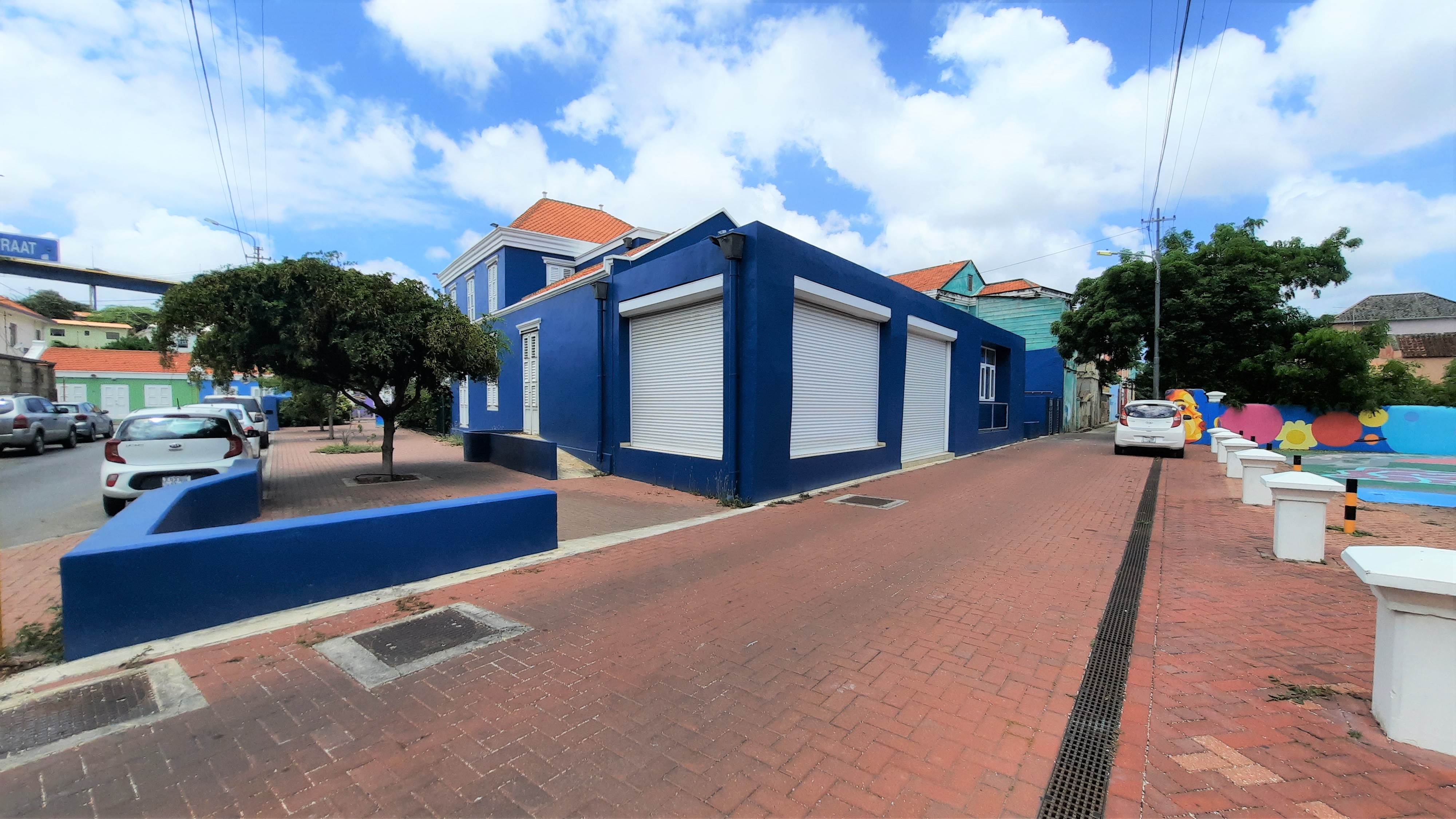 The perfect property for a restaurant, café, minimarket, or marketplace is found at the Parke Leyba in lively Scharloo Abao. Plumbing, wiring, and tiling are present for the installation of a professional kitchen as well as a cozy bar space. The open balcony in front looks out over the street art and playground in the park.